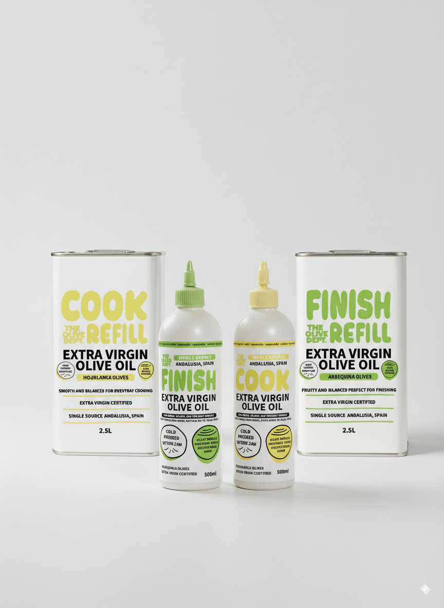 No. 1 Cook (500 ml): A smooth, versatile EVOO designed for everyday use. Perfect for roasting, sautéing, and dressing vegetables with richness that holds up under heat.